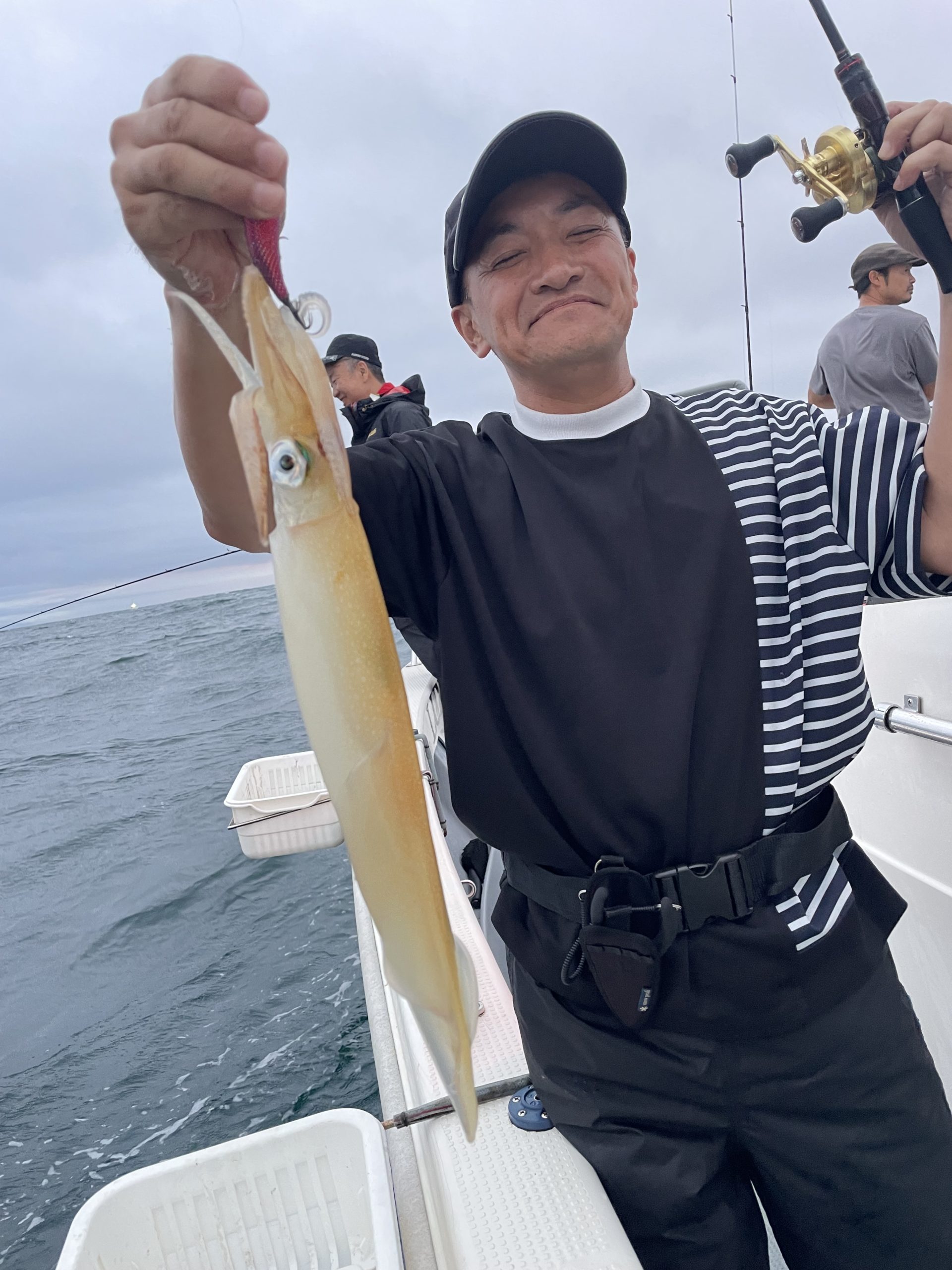 皆さん良い引きをする剣先イカにメロメロ。