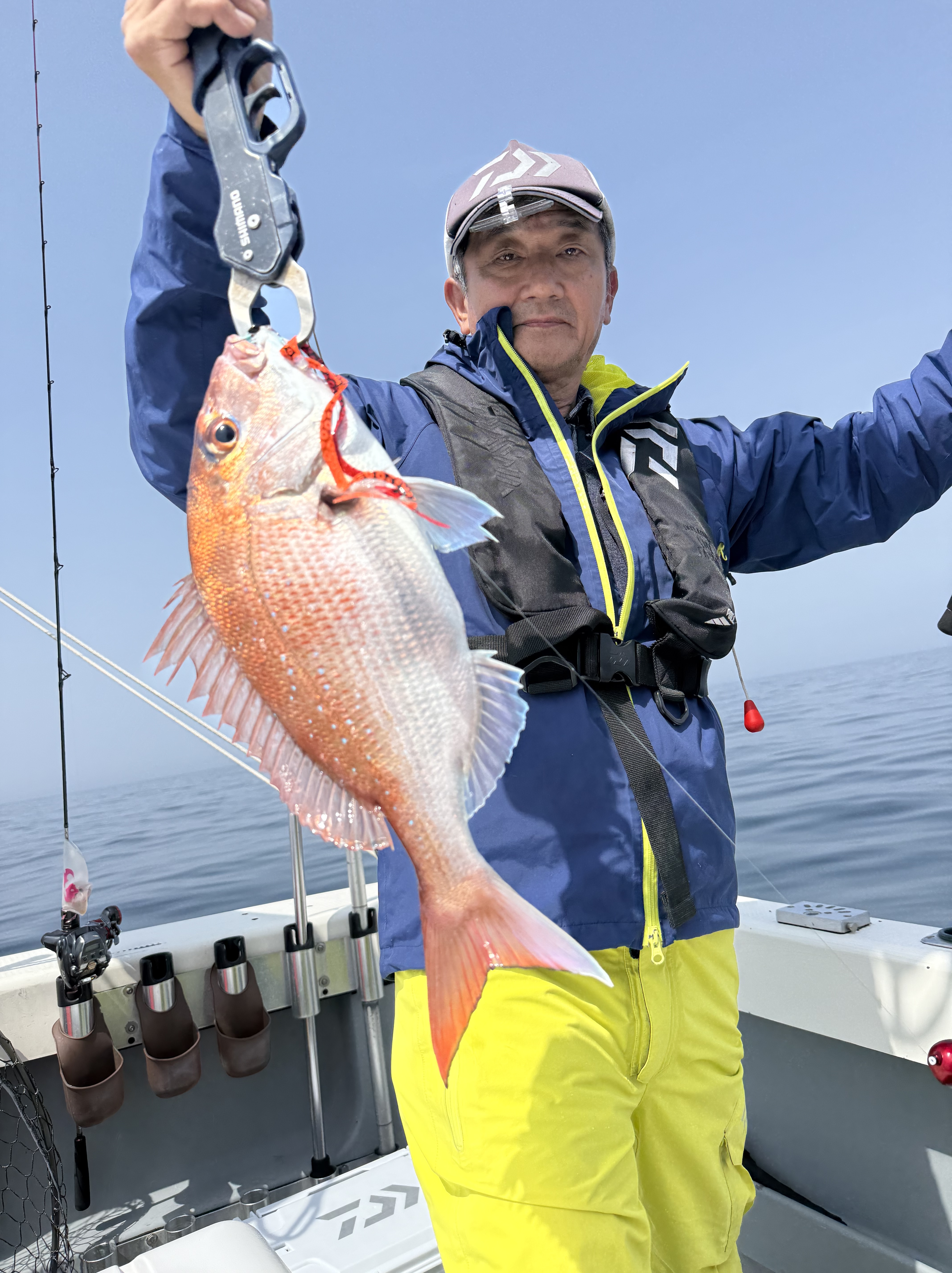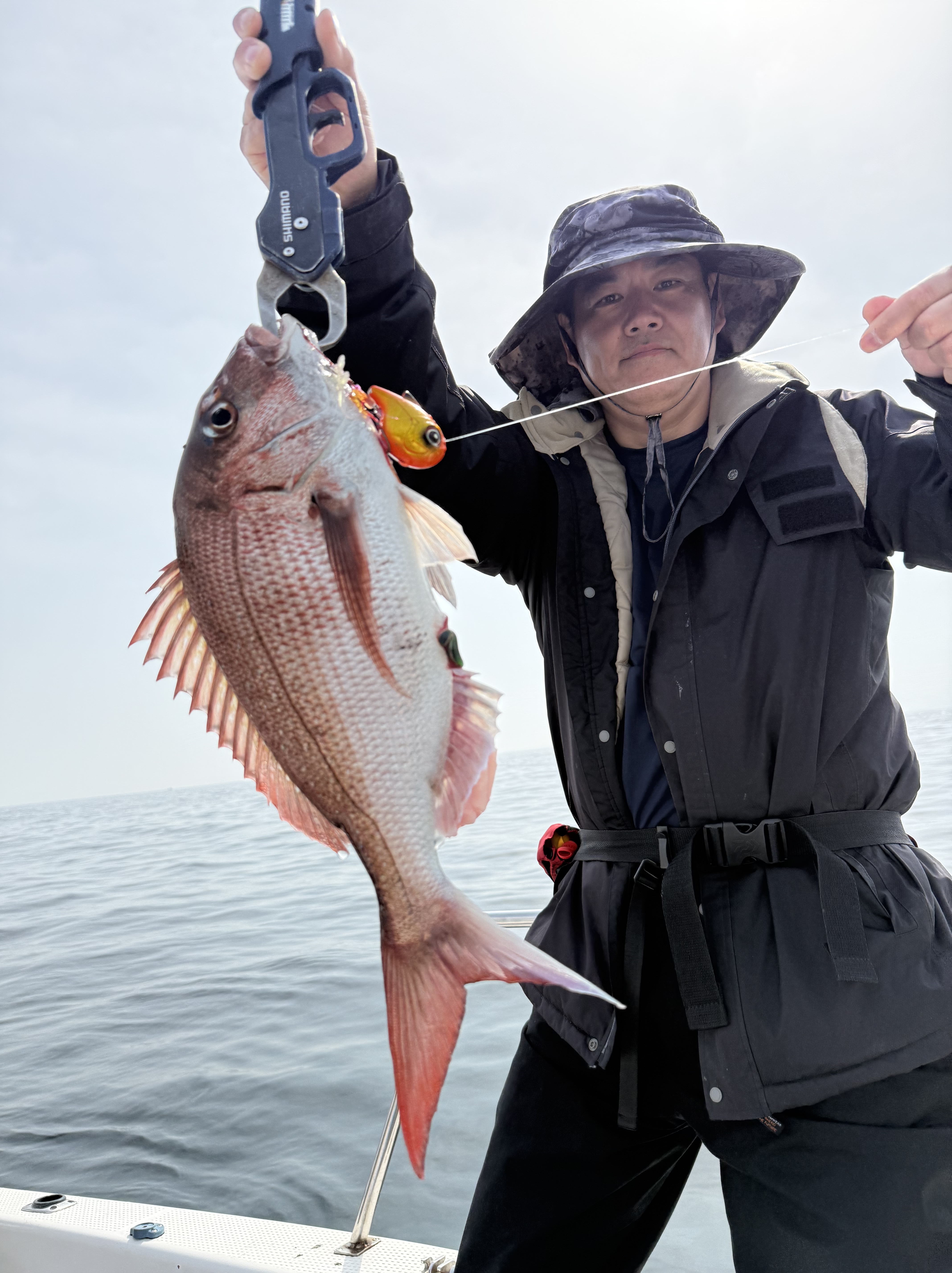 それでも辛抱強く、あの手この手で頑張って頂き、何とかポツリ、ポツリと真鯛の顔が見れました!