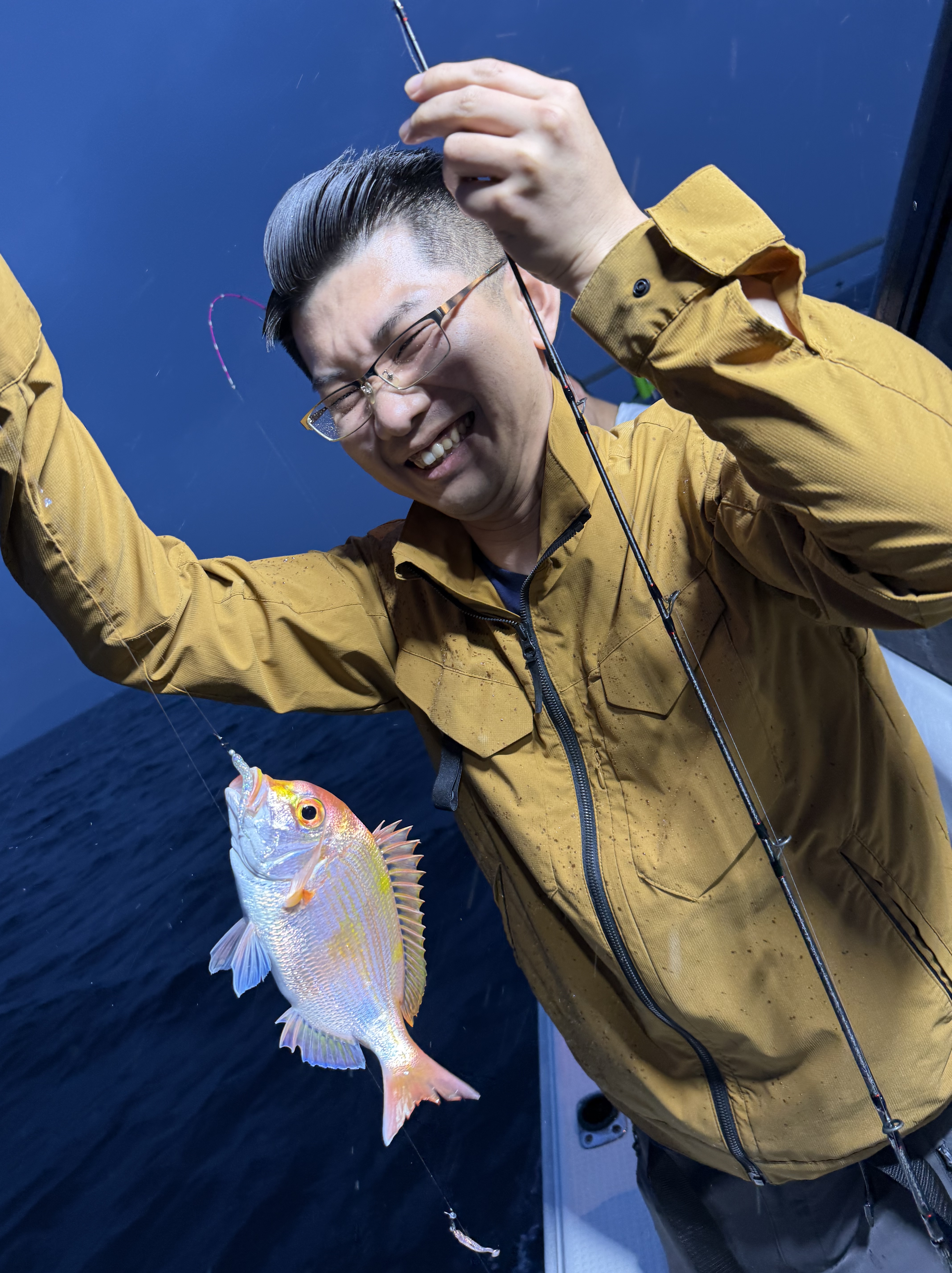しっかり情報通りの急潮で潮の緩そうなポイントを探しまわり、アンカリング!