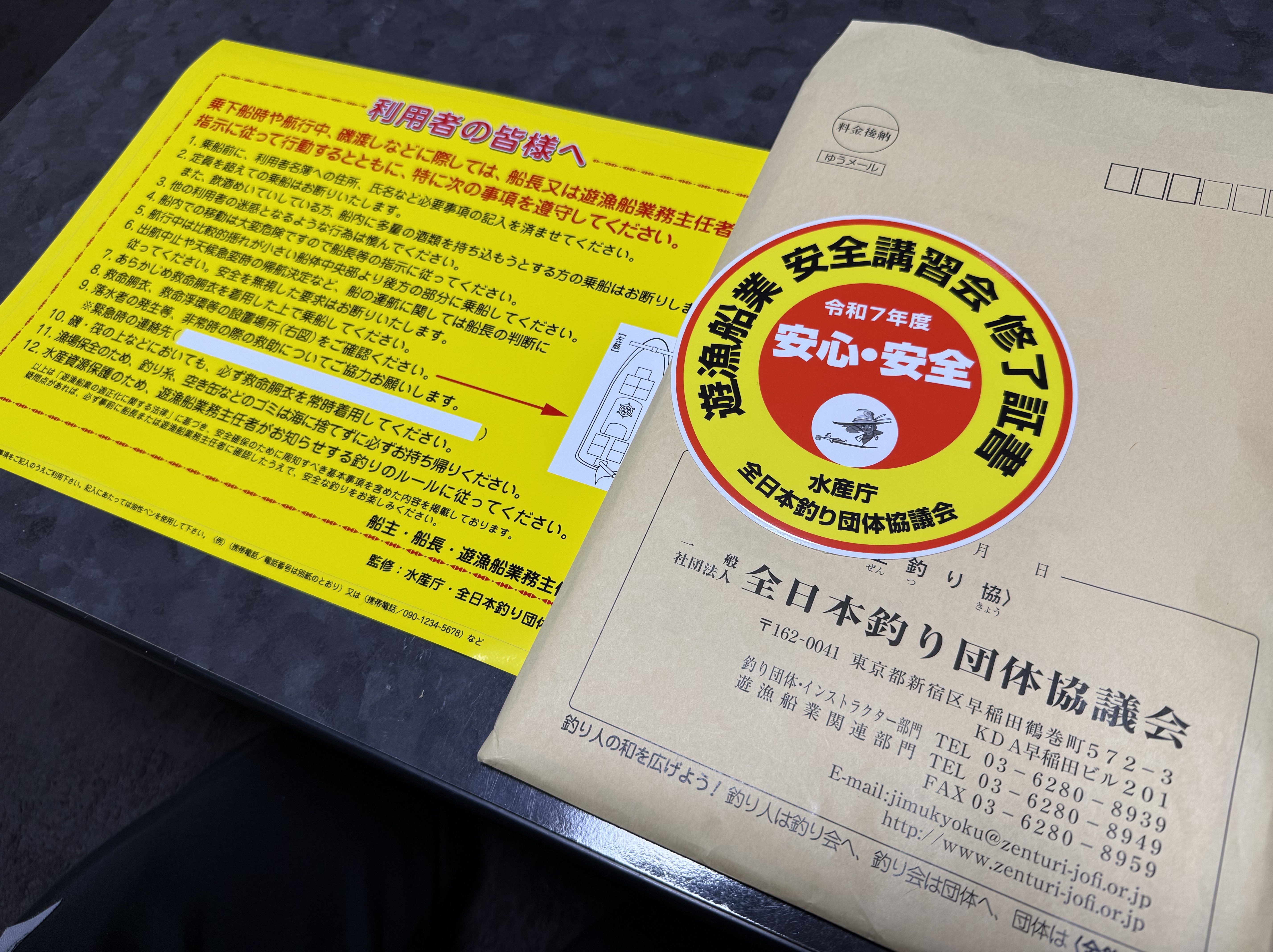 船長はお客様の口に入る魚を扱う側でもありますので船長のスキルアップも兼ねて受講し資格取得してきました!